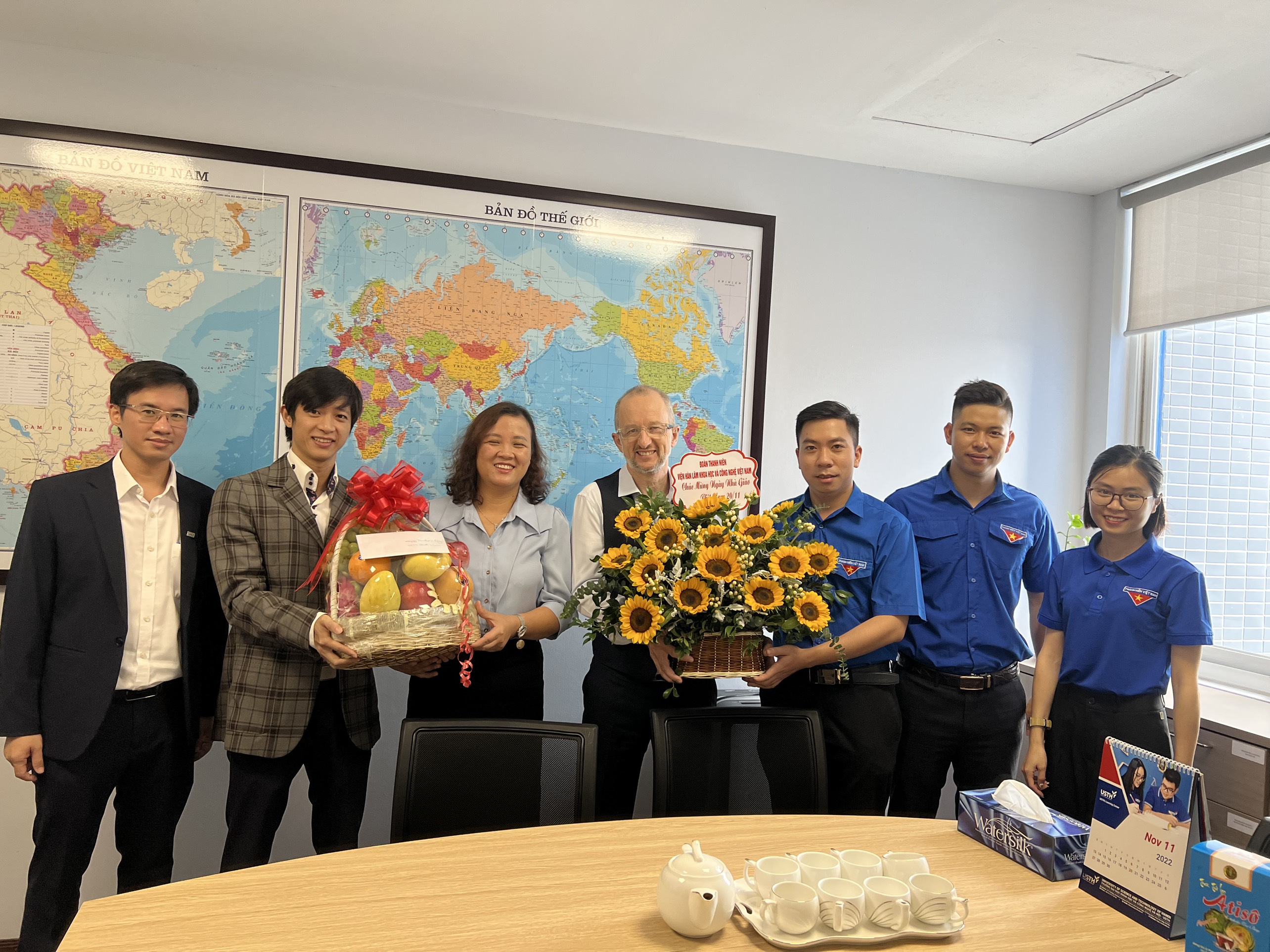 Đoàn Thanh niên Viện Hàn lâm chúc mừng và tặng hoa tri ân các nhà giáo tại Trường Đại học Khoa học và Công nghệ Hà Nội
