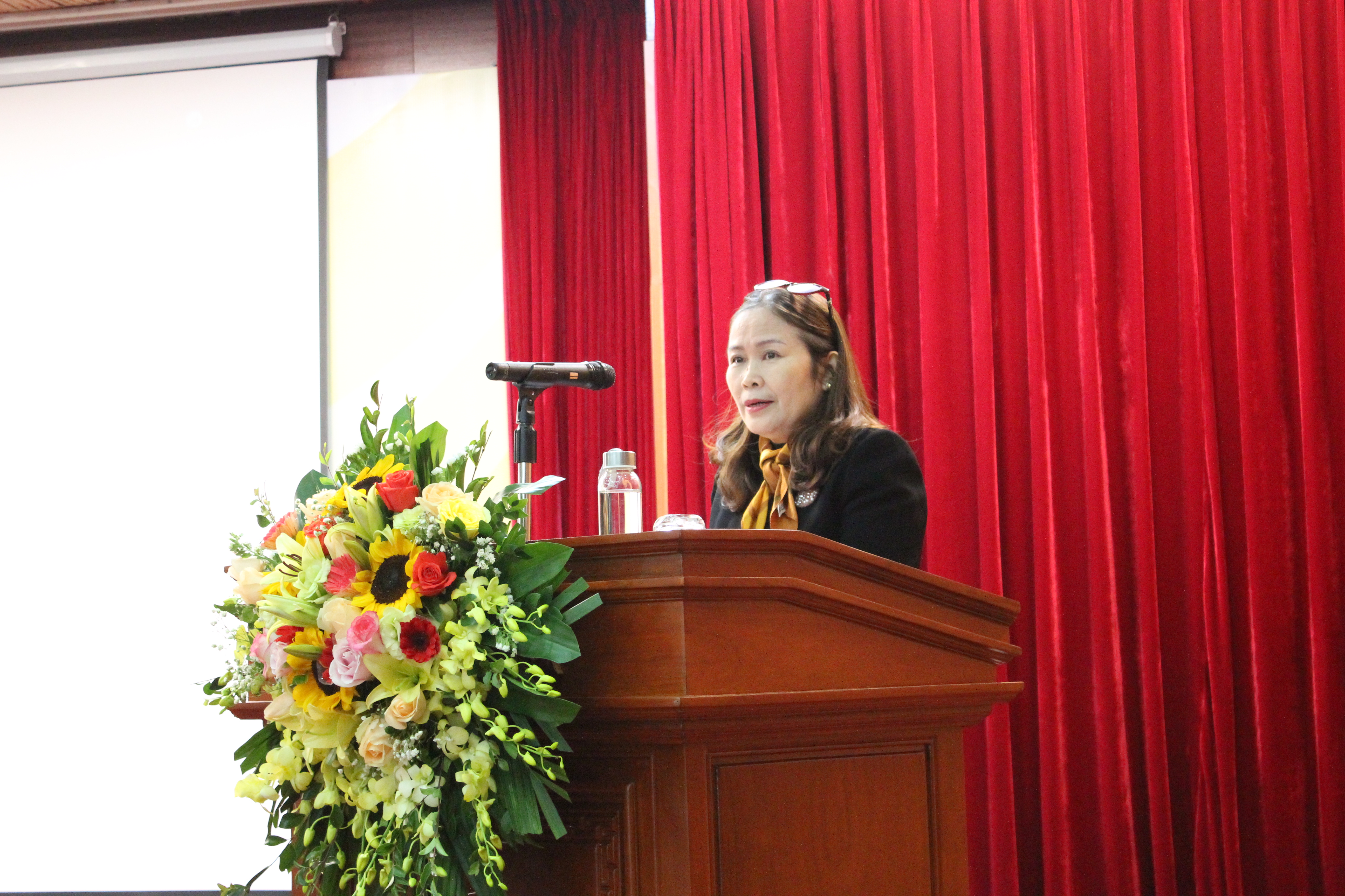 Đồng chí Nguyễn Thị Huệ, Chủ tịch Công đoàn Viện Hàn lâm KHCNVN phát biểu khai mạc hội nghị