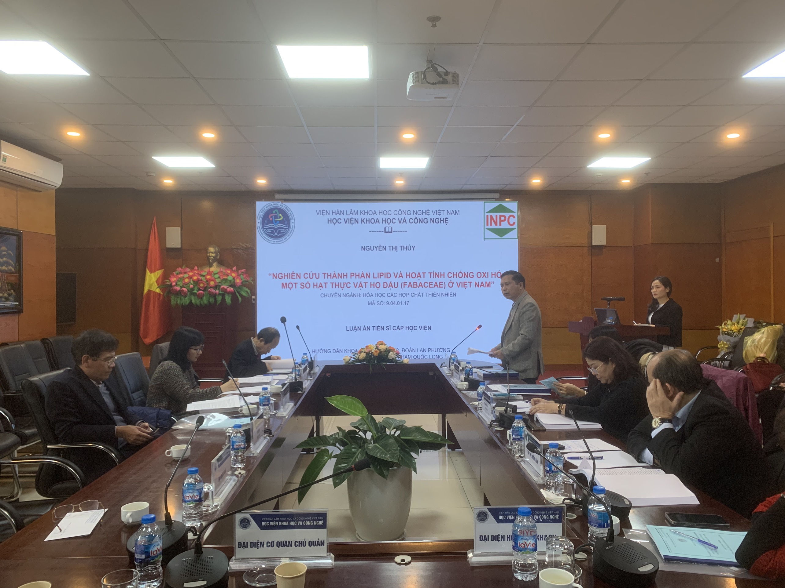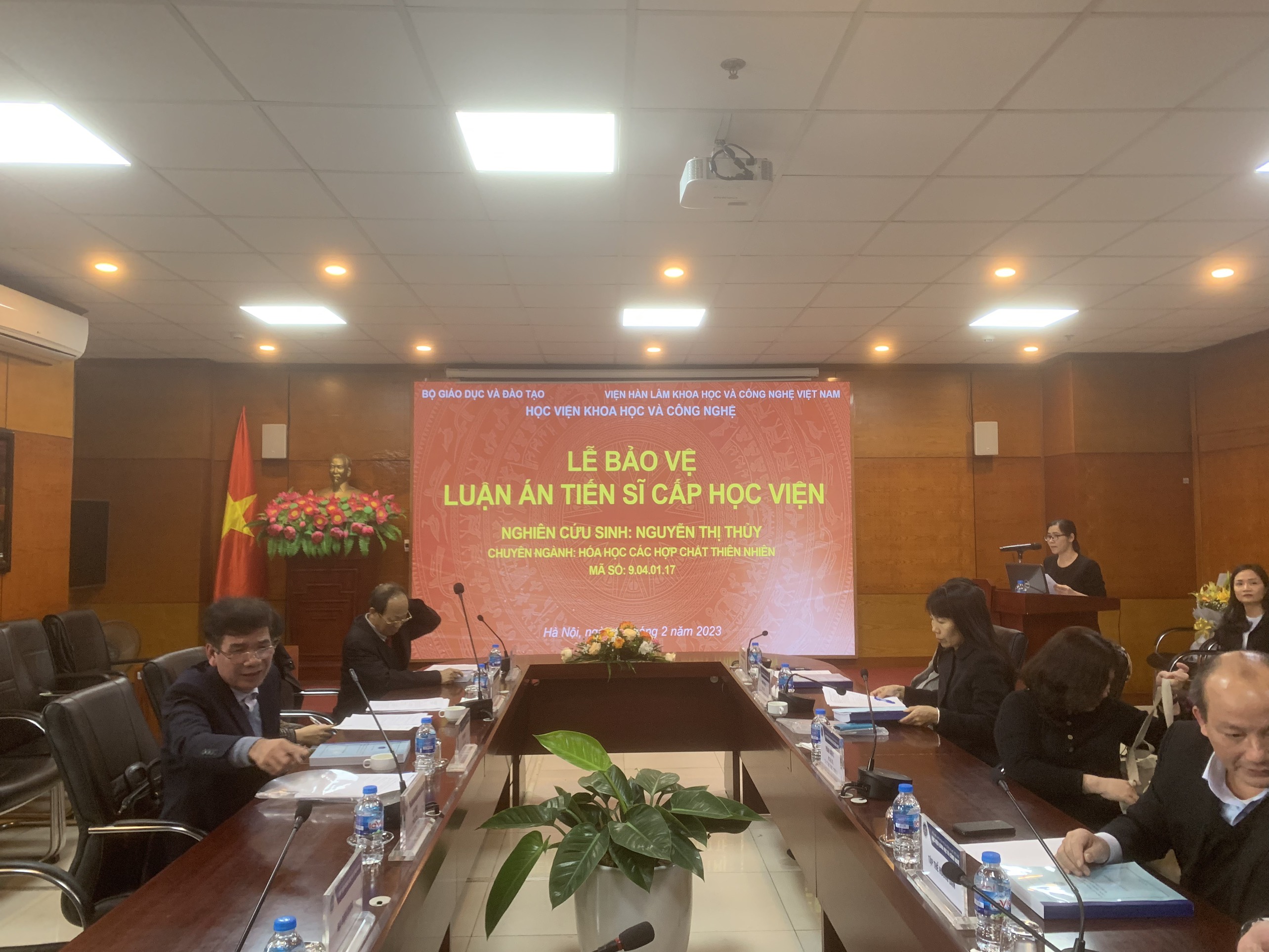 Ngày 16 tháng 02 năm 2023, tại Học viện Khoa học và Công nghệ đã diễn ra buổi Lễ bảo vệ luận án Tiến sĩ cấp học viện của Nghiên cứu sinh Nguyễn Thị Thủy – Khoa Hóa học, chuyên ngành Hóa học các hợp chất thiên nhiên (mã số: 9 44 01 17), đề tài luận án: “Nghiên cứu thành phần lipid và hoạt tính chống oxi hóa một số hạt thực vật họ đậu (Fabaceae) ở Việt Nam” với sự hướng dẫn của PGS.TS. Đoàn Lan Phương và GS. TS. Phạm Quốc Long.