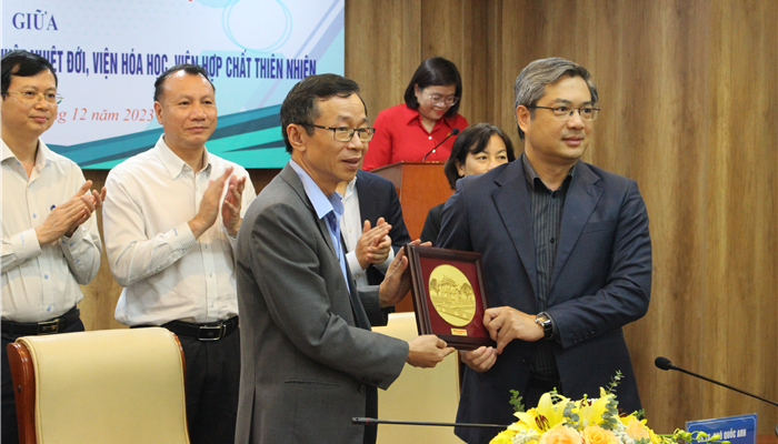 Viện Hóa học các hợp chất thiên nhiên có PGS.TS. Phạm Thị Hồng Minh – Viện trưởng và GS.TS. Phạm Quốc Long - Chủ tịch Hội đồng Khoa học.