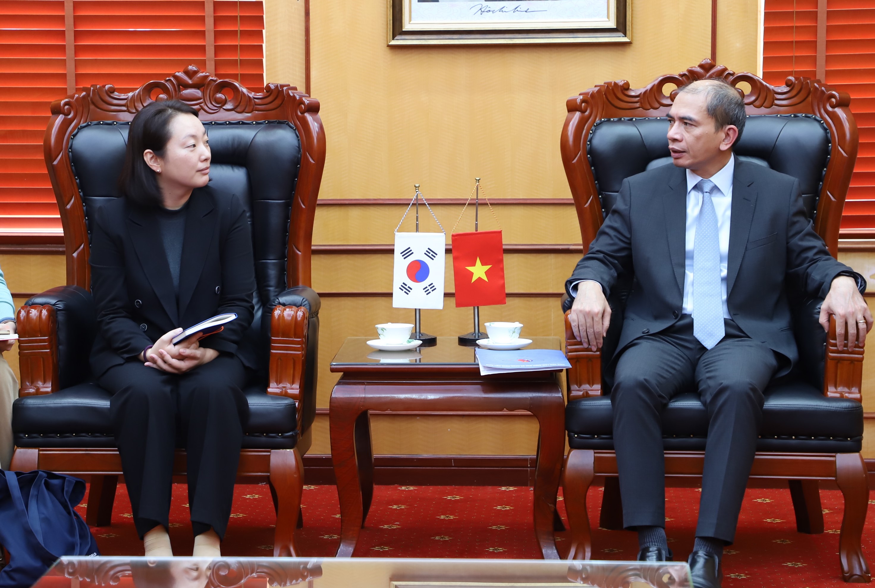 Bà Song EunEui - Phó Giám đốc Quốc gia, KOICA Việt Nam và PGS.TS. Trần Tuấn Anh – Phó Chủ tịch VAST tại buổi làm việc