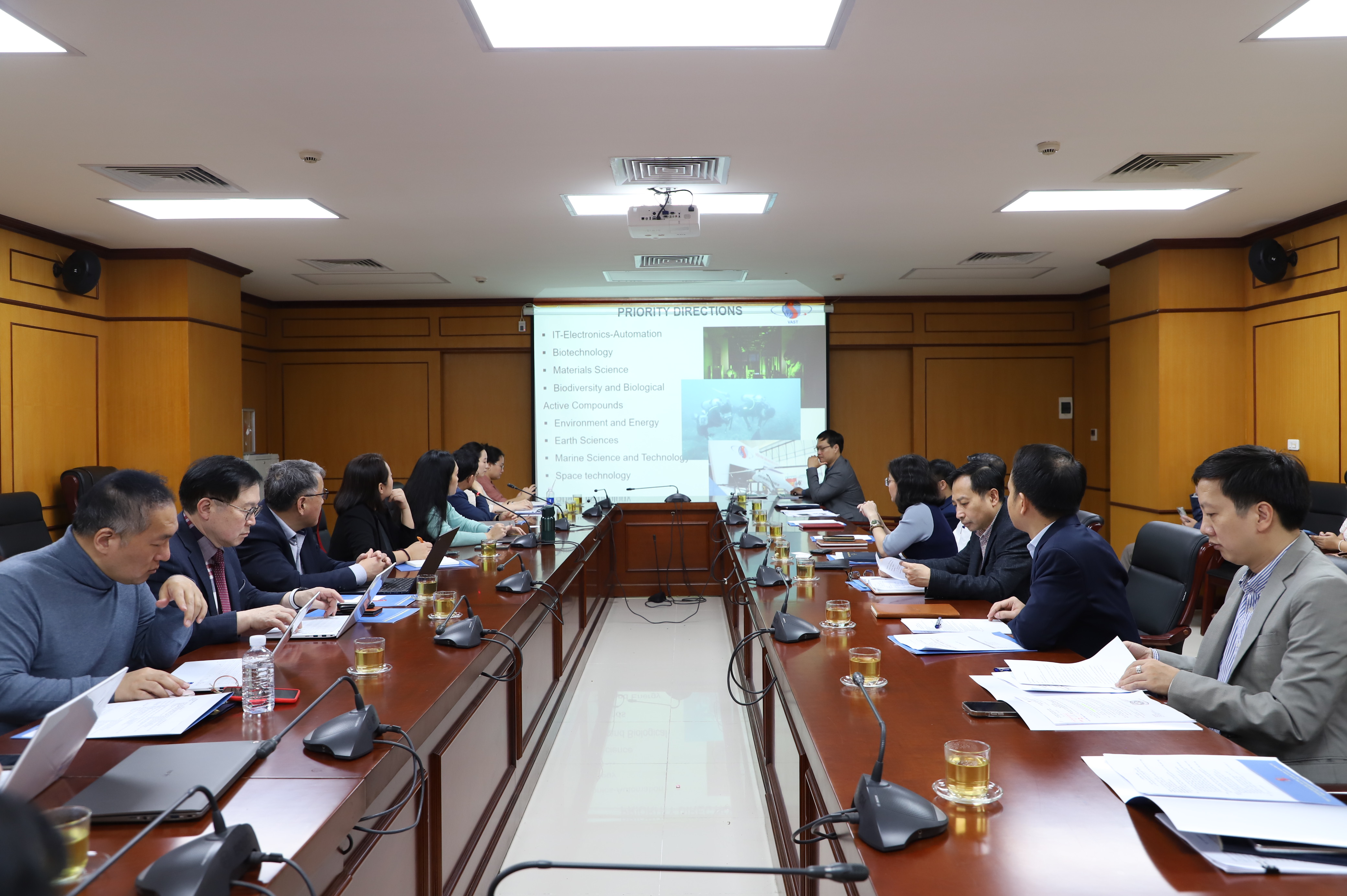 PGS.TS. Trần Tuấn Anh trao đổi, VAST là cơ quan nghiên cứu và phát triển khoa học công nghệ hàng đầu Việt Nam, trực thuộc Chính phủ. Trong thời gian qua, VAST đã triển khai nhiều hoạt động hợp tác với các đối tác nước ngoài trong đó có nhiều đơn vị tại Hàn Quốc. Đặc biệt có mối quan hệ chặt chẽ với Quỹ Nghiên cứu Quốc gia Hàn Quốc (NRF) trong đó có việc phối hợp tuyển chọn và tài trợ thực hiện các dự án nghiên cứu song phương. Có thể nói, trong lĩnh vực khoa học công nghệ, Hàn Quốc đã hỗ trợ Việt Nam đào tạo nguồn nhân lực chất lượng cao, tiếp cận môi trường quốc tế, phối hợp thực hiện nghiên cứu chuyển giao công nghệ là thế mạnh của Hàn Quốc. PGS.TS. Trần Tuấn Anh bày tỏ mong muốn thông qua buổi làm việc này cả hai phía KOICA và VAST sẽ cùng tìm ra được hướng đề xuất hợp tác tiềm năng trong các lĩnh vực là thế mạnh của Việt Nam và Hàn Quốc, từ đó thắt chặt hơn mối quan hệ hợp truyền thống tác tốt đẹp vốn có của hai nước, góp phần thúc đẩy phát triển kinh tế xã hội của đất nước.