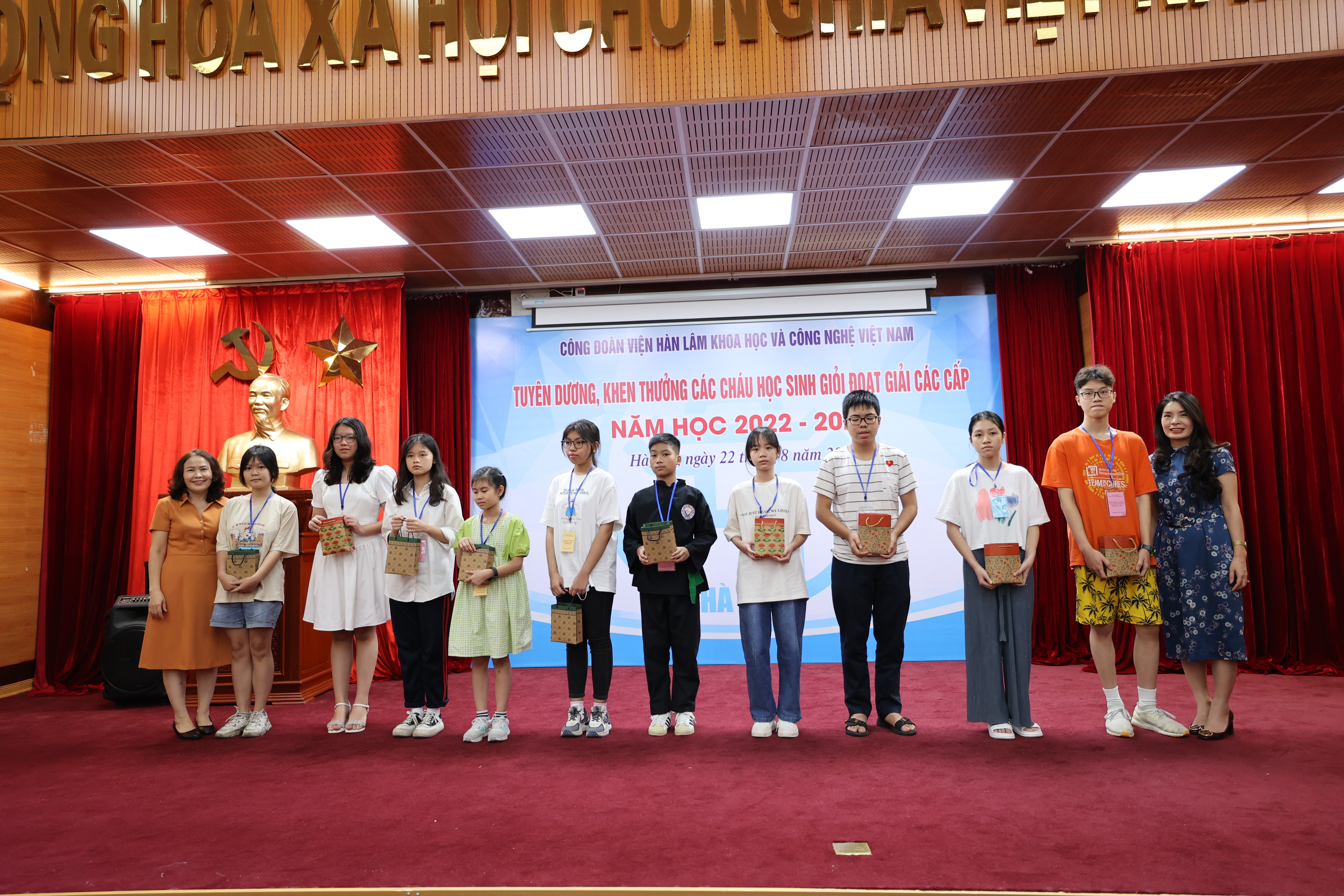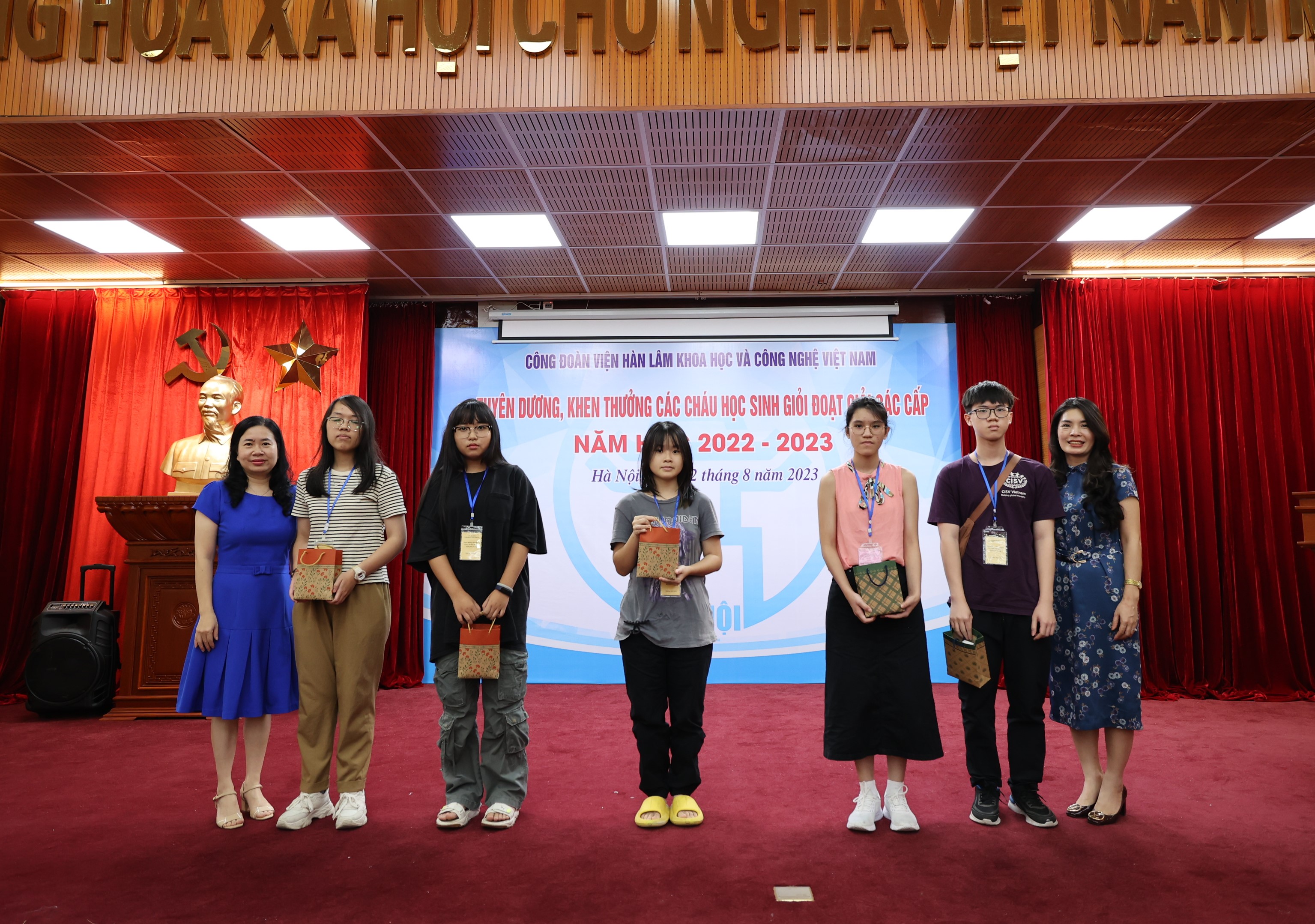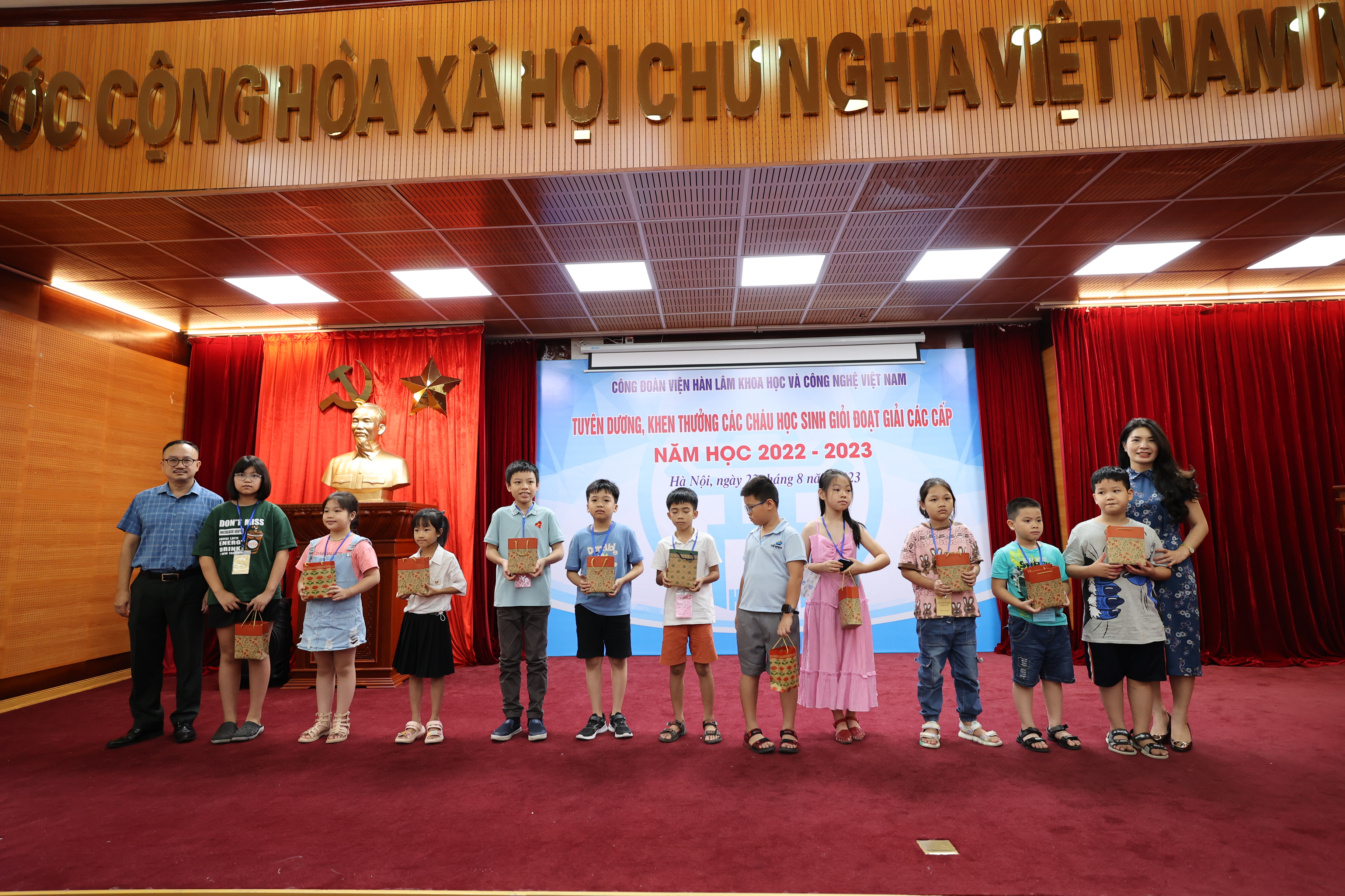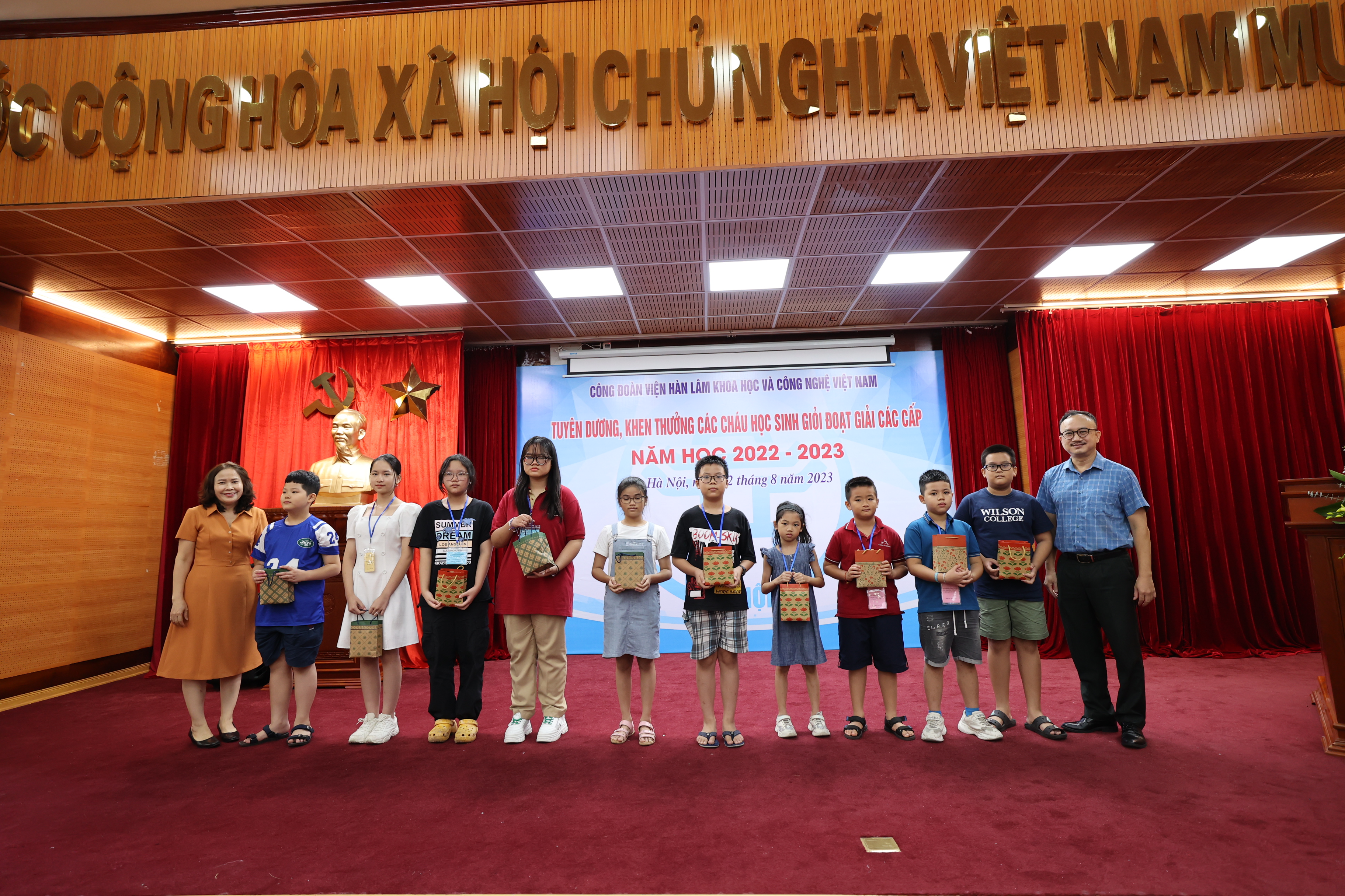 Sáng ngày 22/08/2023, Công đoàn Viện Hàn lâm Khoa học và Công nghệ Việt Nam (Công đoàn Viện Hàn lâm) tổ chức Lễ Tuyên dương, khen thưởng các cháu đạt giải học sinh giỏi các cấp năm học 2022-2023. Lễ tuyên dương, khen thưởng học sinh giỏi các cấp là hoạt động hàng năm do Công đoàn Viện Hàn lâm tổ chức nhằm khuyến khích tinh thần hiếu học, phấn đấu rèn luyện về mọi mặt của các cháu học sinh, biểu dương những tấm gương tiêu biểu có thành tích xuất sắc trong học tập của con em công đoàn viên, đồng thời thể hiện sự quan tâm sâu sắc của lãnh đạo Viện Hàn lâm đối với thế hệ tương lai của cán bộ Viện Hàn lâm