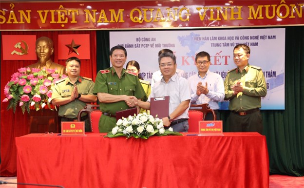 Chiều 01/11/2022, tại Hà Nội, Cục Cảnh sát phòng chống tội phạm (PCTP) về môi trường và Trung tâm Vũ trụ Việt Nam thuộc Viện Hàn lâm Khoa học và Công nghệ Việt Nam tổ chức Lễ ký kết “Thỏa thuận hợp tác về khai thác, sử dụng ảnh và các sản phẩm viễn thám phục vụ công tác PCTP và vi phạm pháp luật về tài nguyên và môi trường”. Thiếu tướng, TS. Trần Minh Lệ, Cục trưởng Cục Cảnh sát PCTP về môi trường và PGS.TS Phạm Anh Tuấn, Tổng Giám đốc Trung tâm Vũ trụ Việt Nam đồng chủ trì Lễ ký kết.