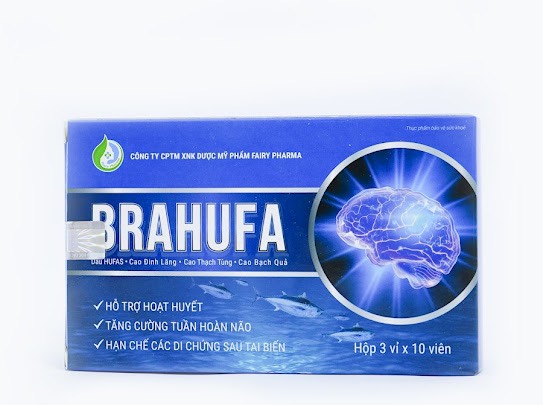 - BRAHUFA có chứa nguyên liệu dầu HUFAs là kết quả nghiên cứu của đề tài KC.09.23/16-20.Sản phầm dạng viên nang mềm, chứa dầu HUFAs được chiết xuất từ cá biển (≥15% DHA), cao đinh lăng, cao thạch tùng và cao bạch quả, dành cho các đối tượng: