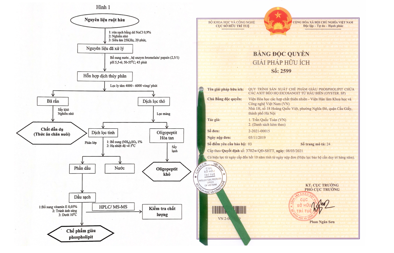 Quy trình chế biến này đã nhận được bằng độc quyền Giải pháp hữu ích từ Cục sở hữu số 2599, chứng minh cho sự thành công và tiềm năng lớn trong việc phát triển nguồn nguyên liệu biển của Việt Nam.