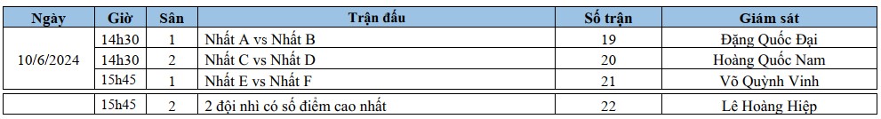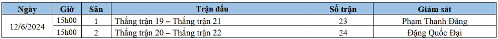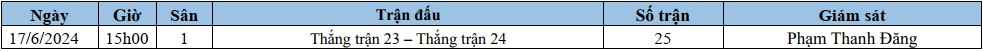Lịch thi đấu: