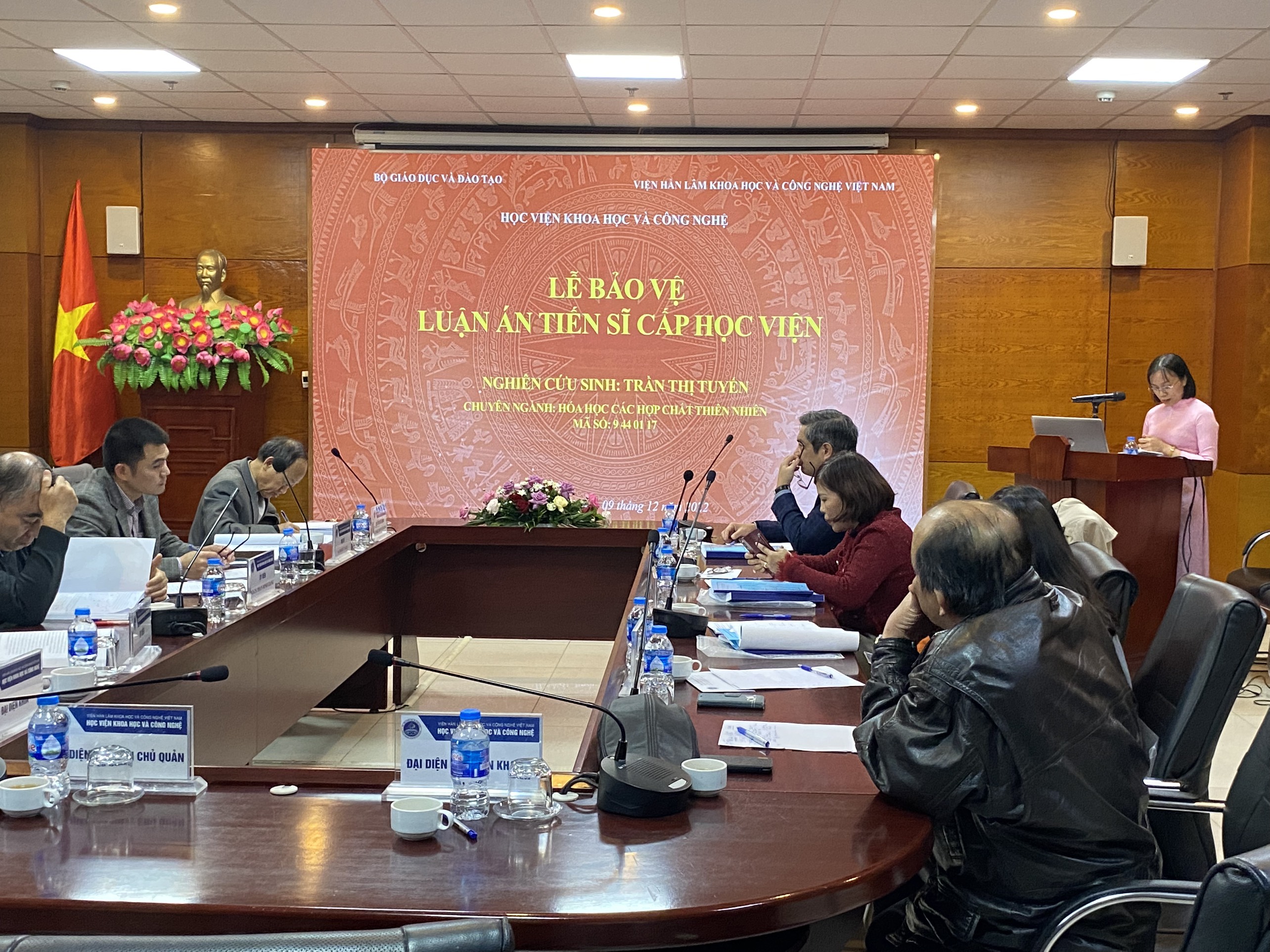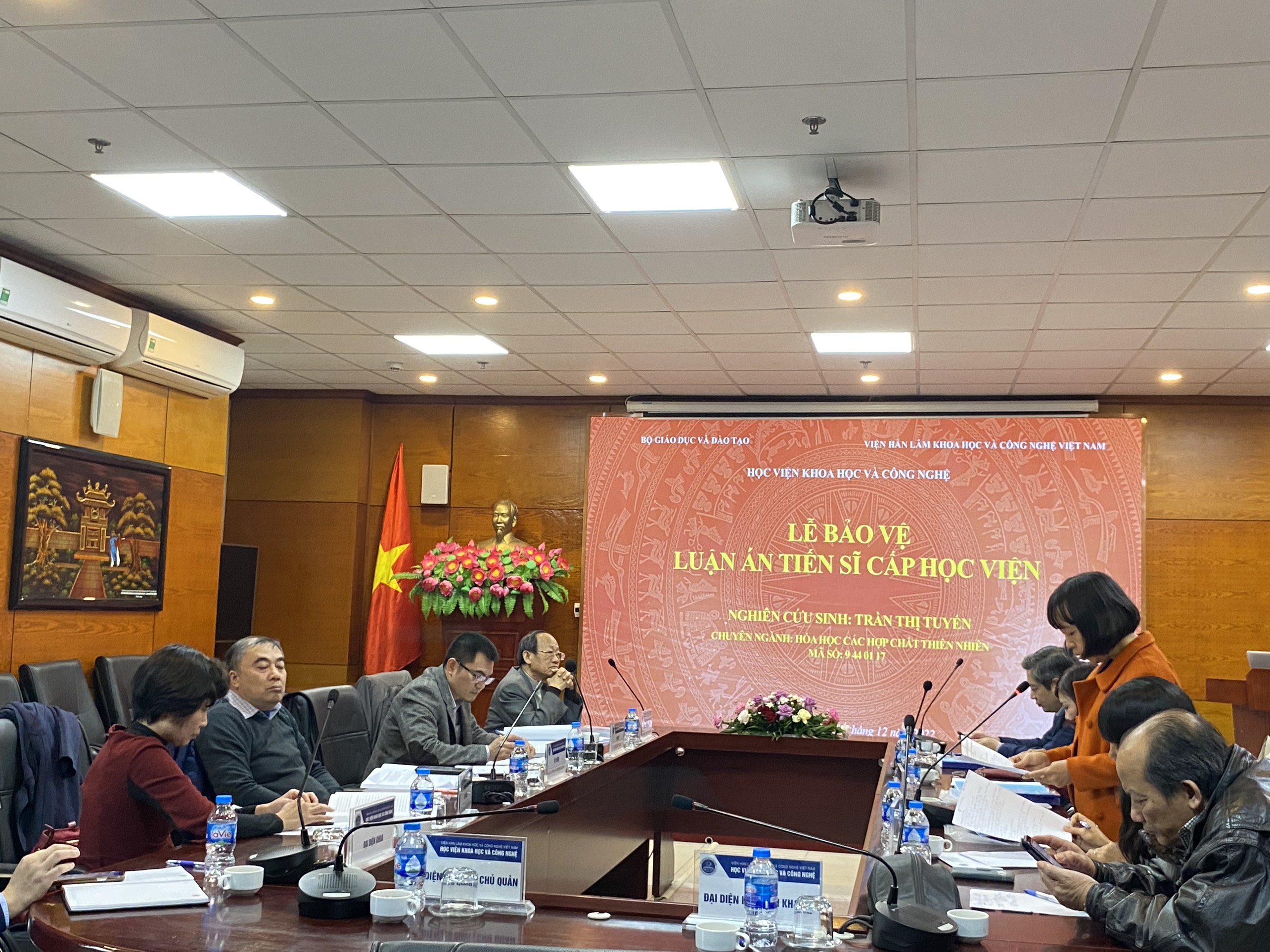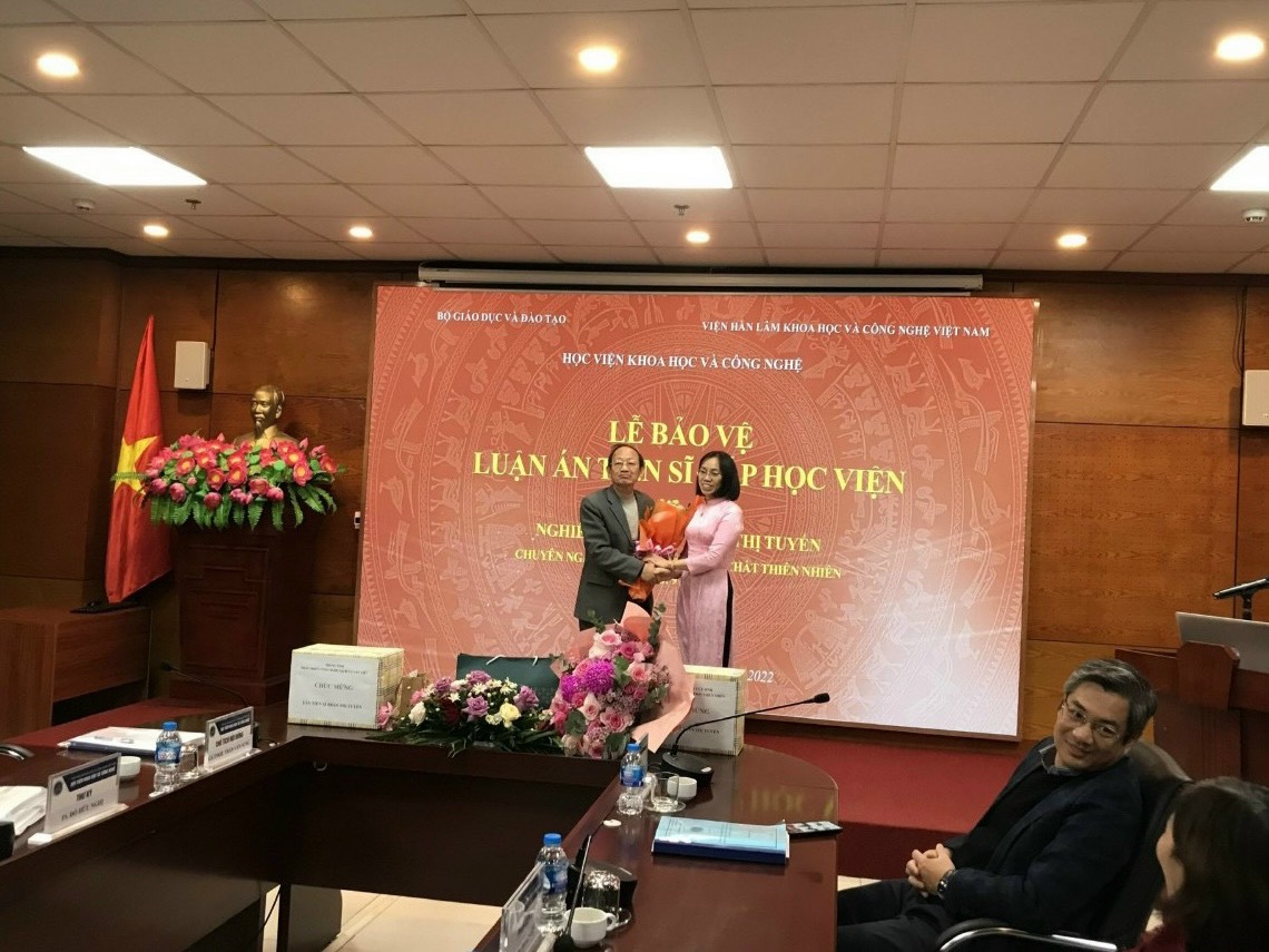 Ngày 09 tháng 12 năm 2022, tại Học viện Khoa học và Công nghệ đã diễn ra buổi Lễ bảo vệ luận án Tiến sĩ cấp học viện của Nghiên cứu sinh Trần Thị Tuyến – Khoa Hóa học, chuyên ngành Hóa học các Hợp chất thiên nhiên (mã số: 9 44 01 17), đề tài luận án: “Nghiên cứu thành phần hóa học và hoạt tính sinh học loài Zanthoxylum nitidum thuộc họ Rutaceae ở Việt Nam” với sự hướng dẫn của PGS.TS. Nguyễn Thị Hồng Vân và PGS.TS. Phạm Minh Quân.