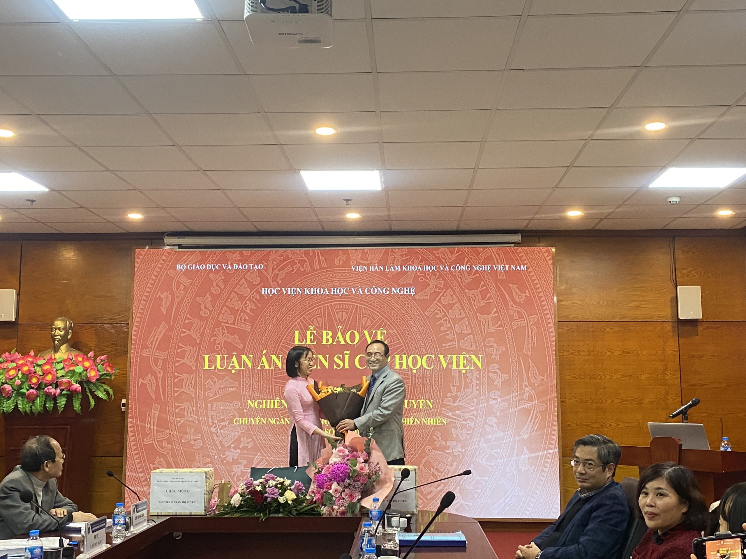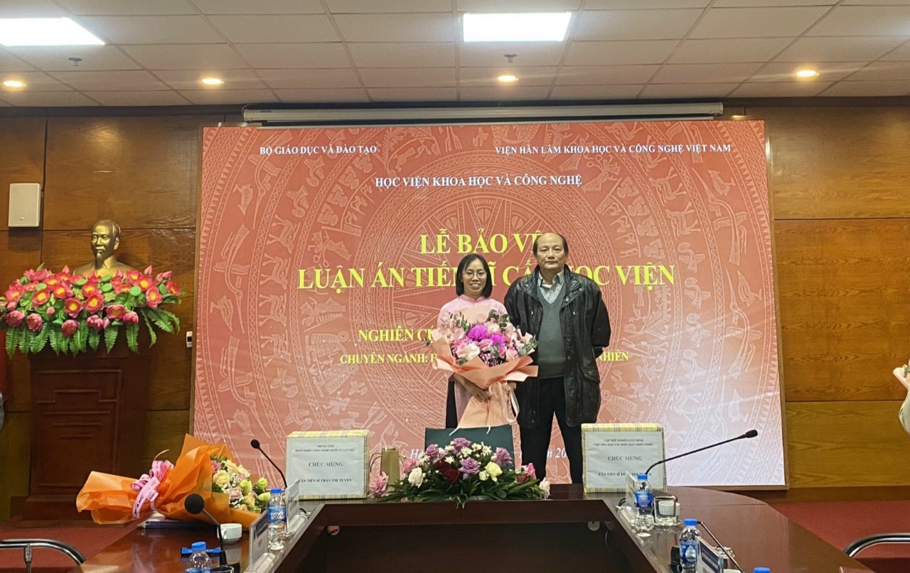 Tham dự buổi lễ có sự hiện diện của TS. Nguyễn Thị Trung – Phó Giám đốc Học viện KHCN; GS.TS. Phạm Quốc Long, PGS.TS. Nguyễn Thị Hồng Vân và PGS.TS. Phạm Minh Quân – Giáo viên hướng dẫn của NCS cùng một số bạn bè, đồng nghiệp và người thân của nghiên cứu sinh.